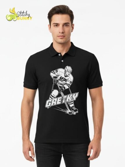 The 2025 Stitchy Bunny “GRETZKY” Ice Hockey Graphic Polo Shirt is a tribute to the legacy of hockey greatness. Designed