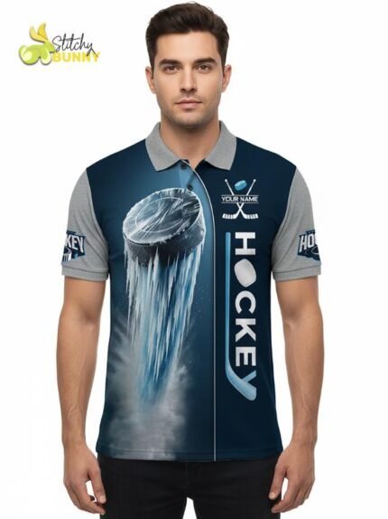 The 2025 Stitchy Bunny “Frozen Puck” Ice Hockey Graphic Polo Shirt delivers a bold and icy aesthetic for hockey fans