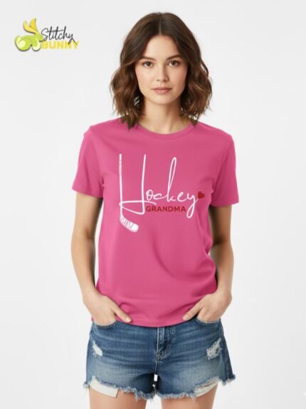 Celebrate your love for hockey and family pride with the Stitchy Bunny Women’s Hockey Grandma T-Shirt. This stylish and comfortable