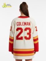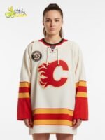 Celebrate your Calgary Flames pride with this authentic NHL Women’s Hockey Jersey featuring detailed Alberta Canada patches. Designed with a flattering fit for women, this jersey combines official team style with comfort and durability. Perfect for game day, casual wear, or showing off your Flames spirit wherever you go.