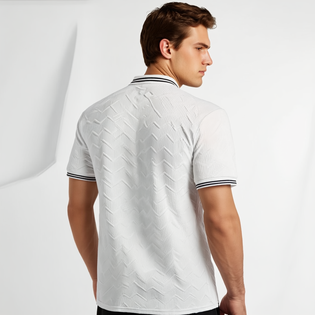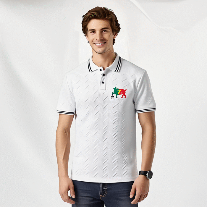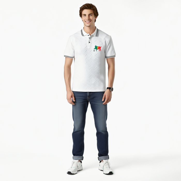 Make a bold statement with the Men’s Black Polo Shirt featuring a Vibrant Soccer Player Graphic. Designed with breathable fabric and a subtle geometric texture, this short-sleeve polo is the perfect blend of sporty energy and casual sophistication. With red and white accent details, it’s versatile enough for outdoor activities, running, casual outings, or even business-casual wear—ideal for soccer enthusiasts who love style and comfort.