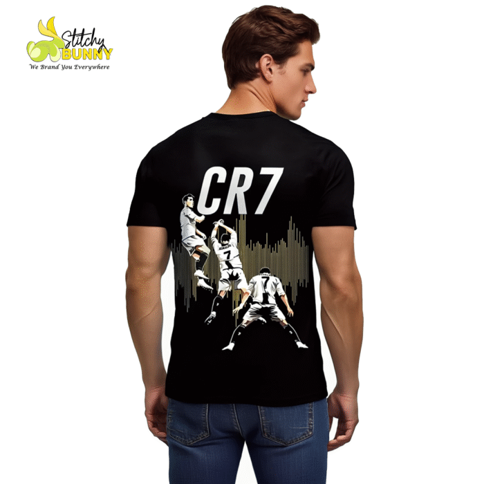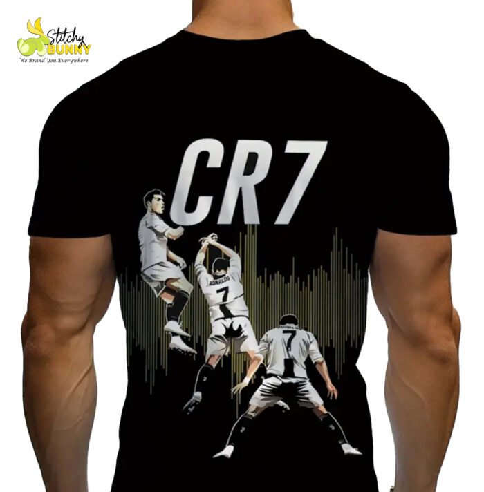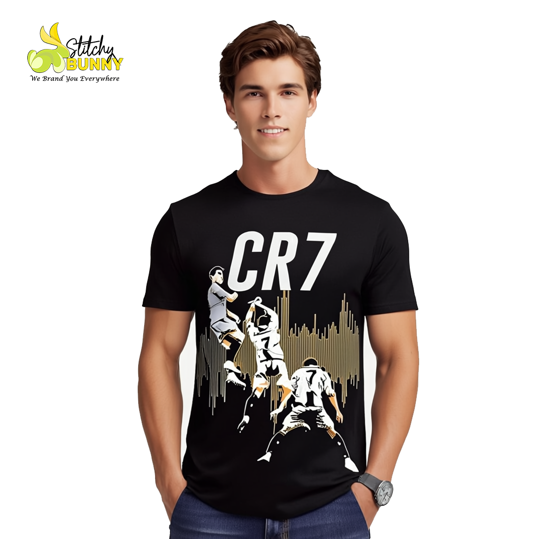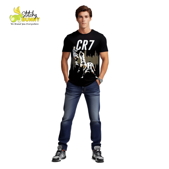 Celebrate your passion for the game with the Men’s CR7 Soccer Graphic T-Shirt. Crafted from durable, lightweight polyester, this black tee combines comfort and style with striking player illustrations. Perfect for gym sessions, outdoor activities, casual wear, or team events, it’s a versatile piece of soccer apparel for fans and athletes alike.