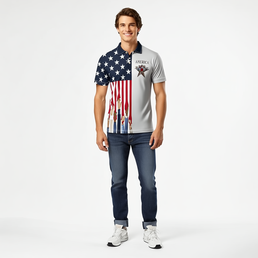 Show your American pride with the Men’s Patriotic American Flag T-Shirt. Designed in bold red, white, and blue with stars and a subtle floral print, this lightweight tee is perfect for Independence Day celebrations, casual outings, or outdoor activities. Made from breathable polyester with durable stitching, it ensures comfort, style, and long-lasting wear for men and teens alike.