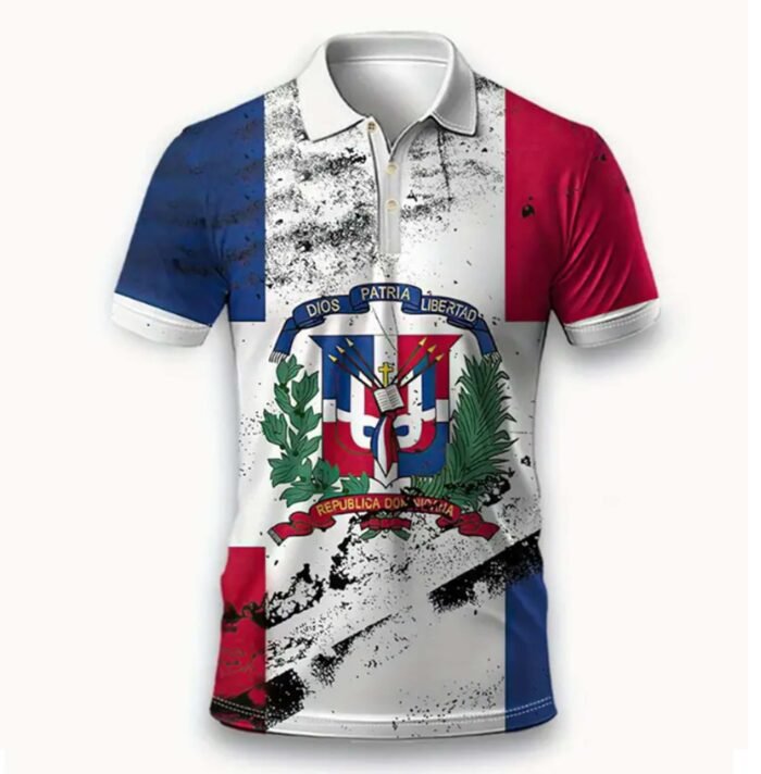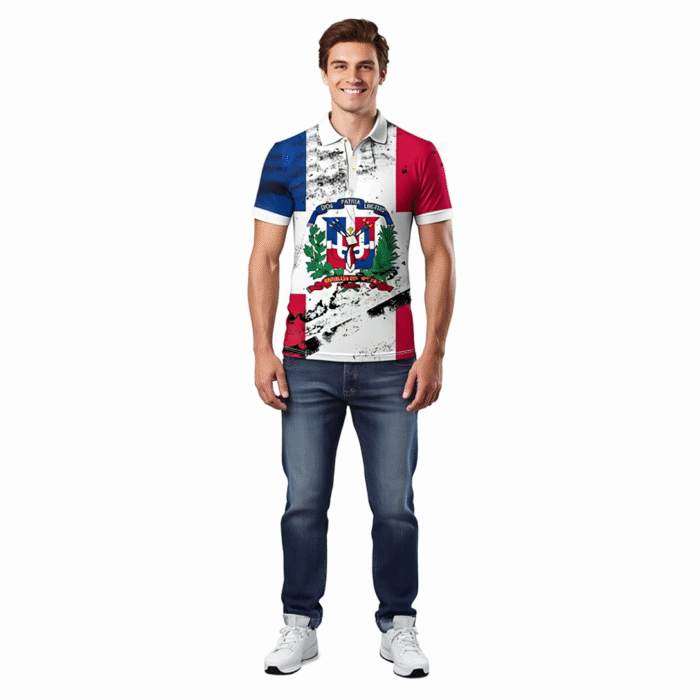 Men’s Patriotic Dominican Republic Flag Print Polo Shirt