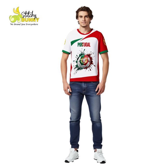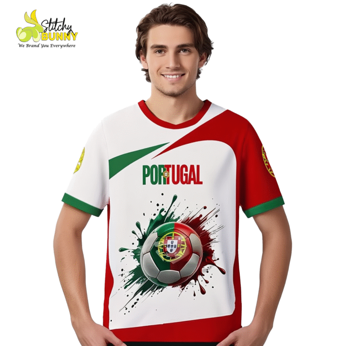 Show your support for Portugal with the Men’s Portugal Soccer Ball 3D Print T-Shirt. Featuring bold red and white colors with green and white graphic accents, this casual short-sleeve crewneck is perfect for summer wear, match days, and everyday style. Made from lightweight polyester fabric with a regular fit, it combines comfort, durability, and national pride for soccer fans.