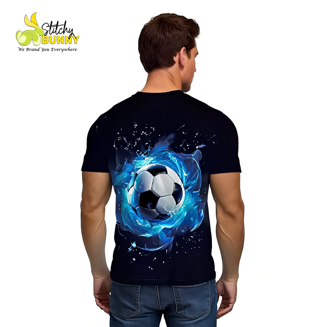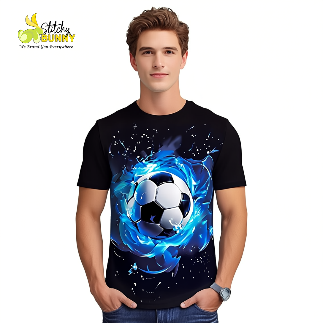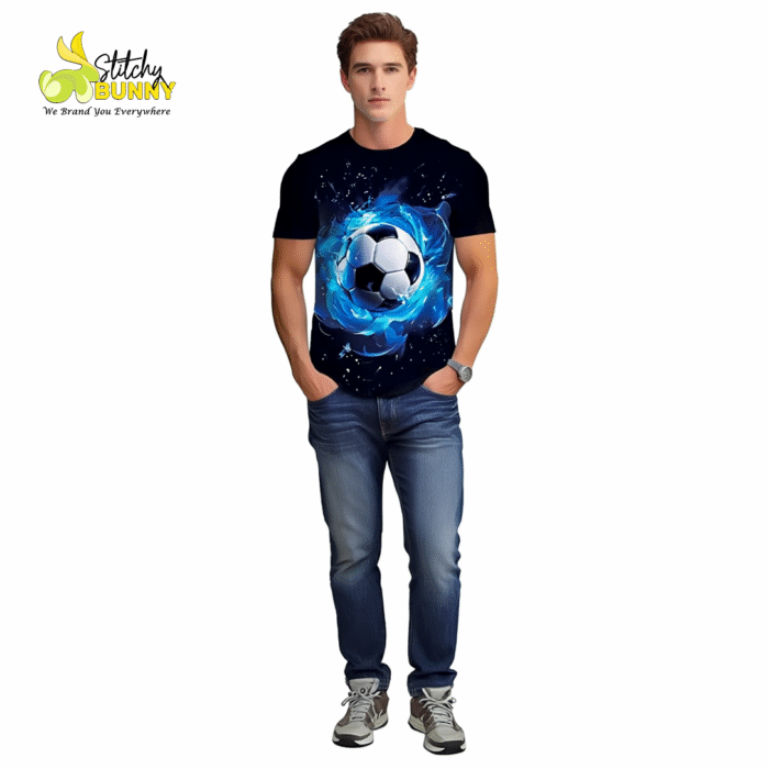 Step into sporty style with the Men’s Soccer Graphic T-Shirt, featuring a bold soccer ball print surrounded by a vibrant blue swirl and stars. Made with soft, breathable fabric, this comfort-fit crew neck tee is perfect for football fans, casual wear, and active lifestyles. A versatile piece of fan apparel that combines athletic energy with everyday comfort.
