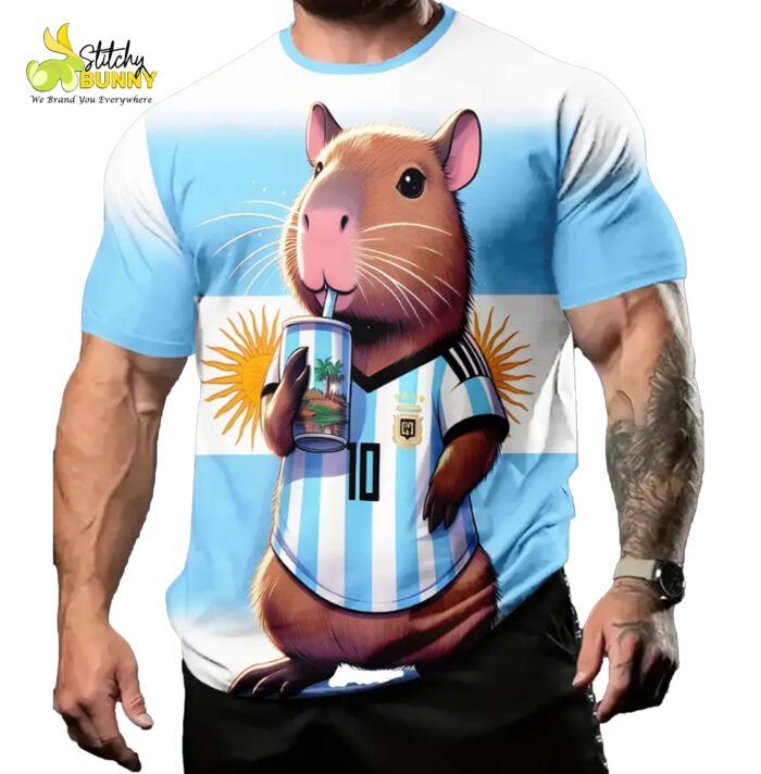 Men’s Summer 3D Digital Print Capybara Soccer T-Shirt