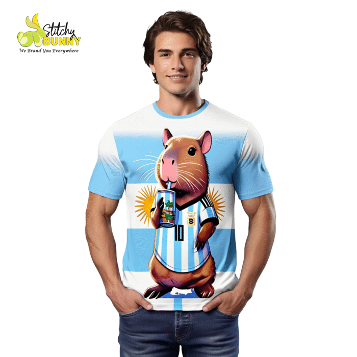 Design Options: 3D digital capybara soccer print, customizable graphics or team logo