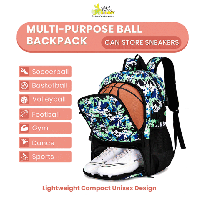 Stitchy Bunny Basketball & Sports Backpack – Large Gym & Travel Bag with Ball and Shoe Compartments