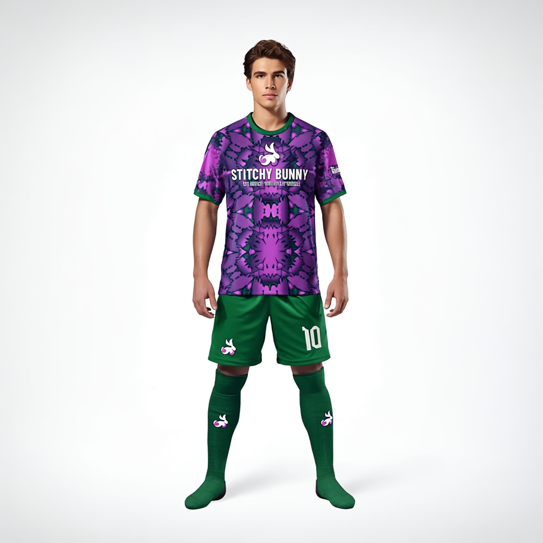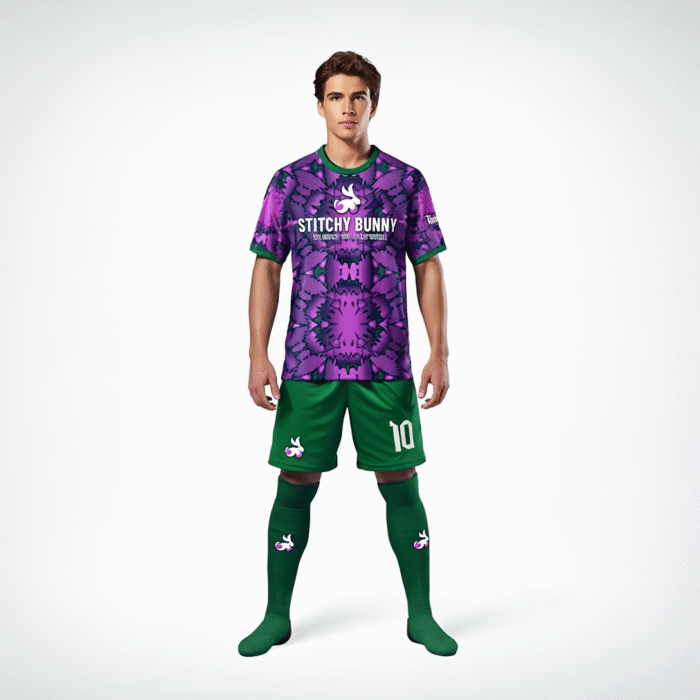 Step onto the field in style with the Stitchy Bunny Purple & Green Custom Sports Kit, a bold fusion of energy and elegance. The rich purple tone paired with striking green accents gives this kit a powerful athletic edge. Designed for comfort, performance, and team pride, it’s perfect for players who dominate with confidence and class.