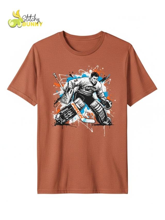 The Stitchy Bunny “Brick Wall 97” Roy Edition tee is crafted for true hockey fans who live for glove saves and high-pressure moments. Featuring an explosive comic-style goalie design with splashes of color and powerful detailing, this t-shirt pays tribute to the fearless netminders who hold the line.