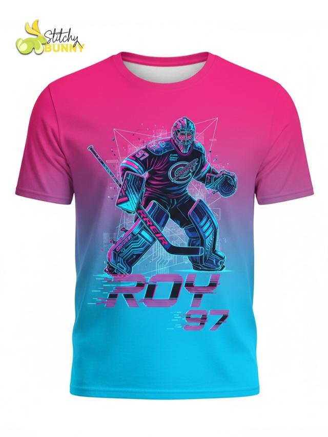 Unleash your inner ice hockey fan with the Stitchy Bunny Men’s Ice Hockey T-Shirt – Roy 97 Edition. Featuring a dynamic neon-inspired goalie graphic on the front and a bold portrait on the back, this shirt captures the fierce spirit and energy of the rink. Perfect for casual wear, game days, or street-style statements, this tee brings the cool vibes and iconic player tribute to your everyday wardrobe.