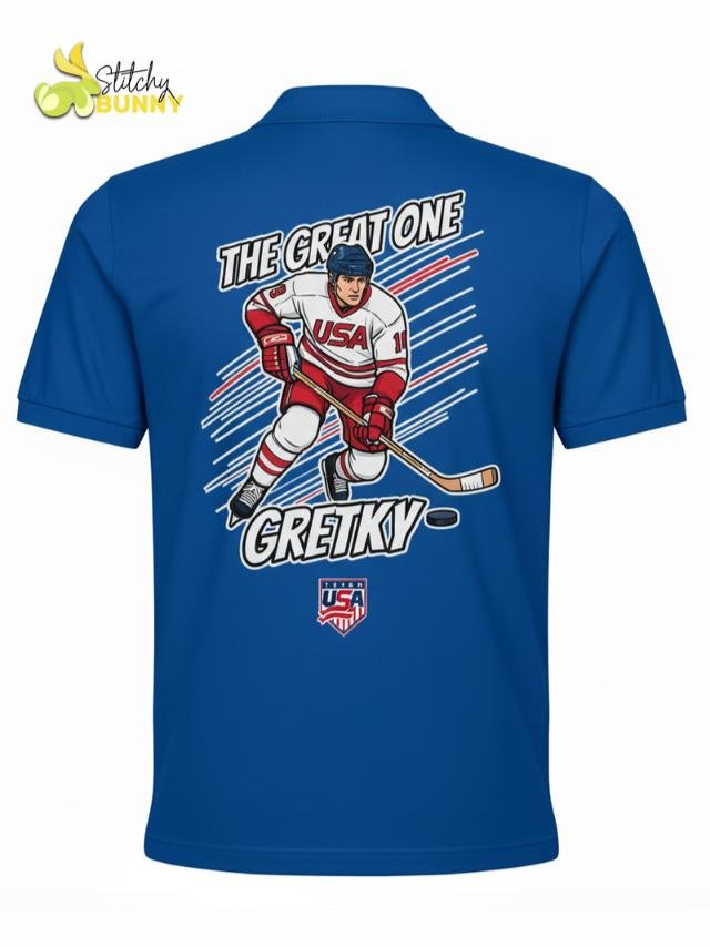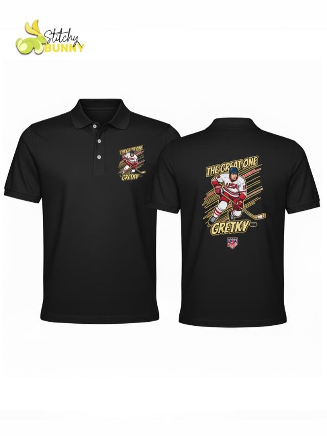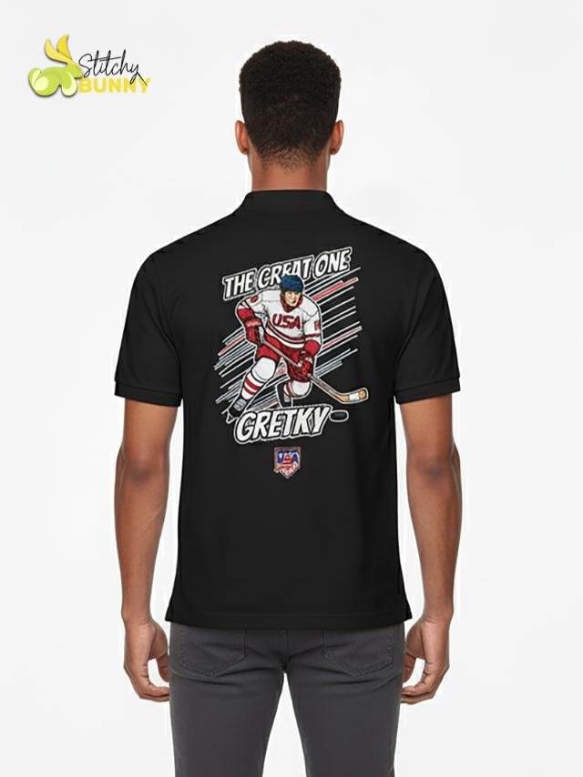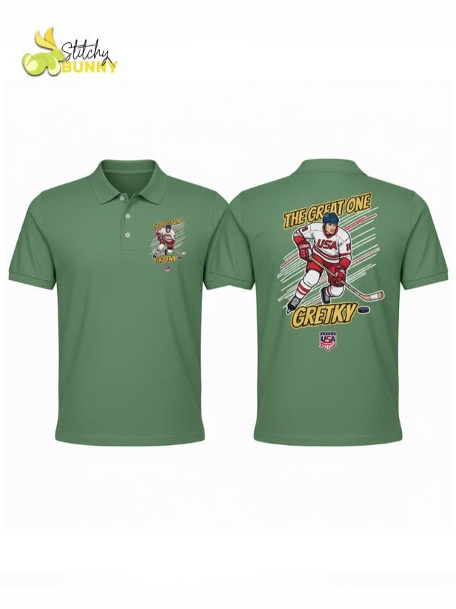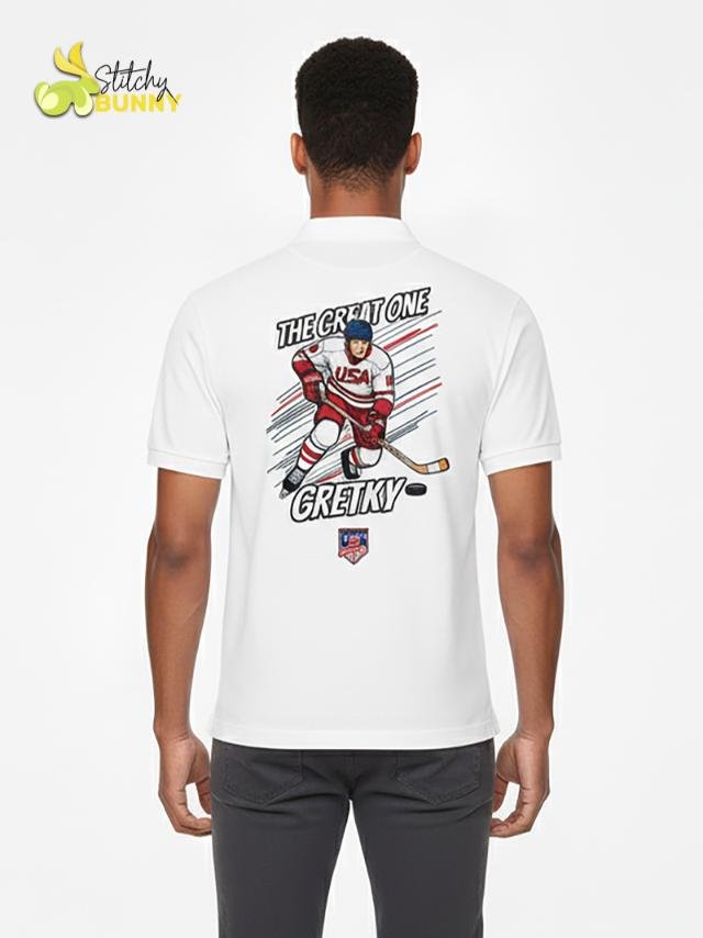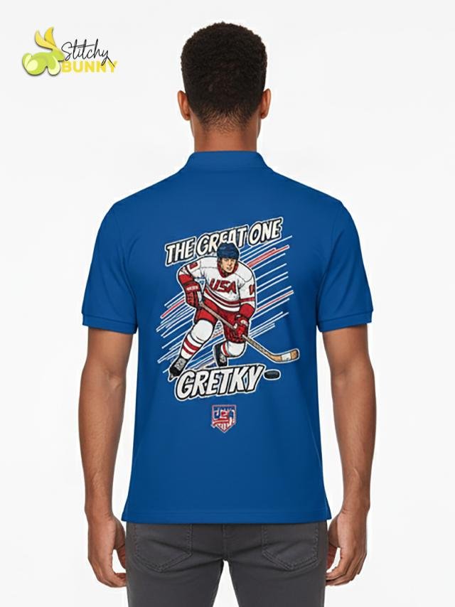 Celebrate hockey royalty with the 2025 Stitchy Bunny “The Great One” USA Hockey Polo Shirt – White Edition. Designed for true fans, this polo features a bold comic-style graphic of a USA hockey player, blending classic sports style with modern streetwear energy. Crafted from premium moisture-wicking fabric, it’s lightweight, breathable, and perfect for game days, casual wear, or collector fan gear.