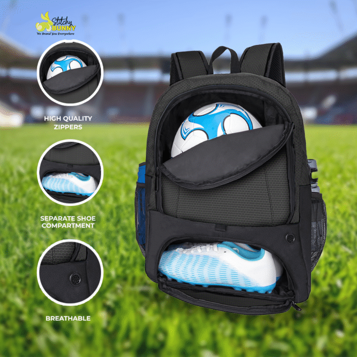 Built with durable polyester and nylon materials, this backpack withstands rain, mud, and daily wear — perfect for games, training, or school use.