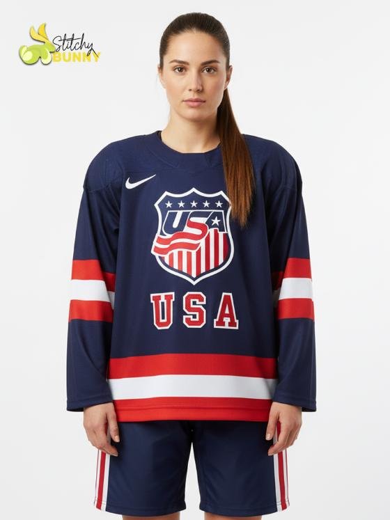 Show your patriotic spirit on and off the ice with the Team USA Women’s Ice Hockey Jersey – National Pride Edition by Stitchy Bunny. This premium jersey celebrates American excellence in sports with an authentic USA crest, bold red and white striping, and a modern athletic fit tailored for women.